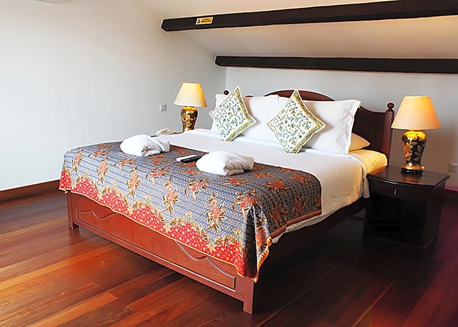 Indulge in a variety of room types at Heeren Straits Hotel that guarantee a comfortable and enjoyable stay. For a breathtaking experience, the Vista Room offers 603 sqft of space, accommodating 2 adults and 2 children on its queen-size bed. If you prefer a more intimate ambiance, the Deluxe Room, with its queen-size bed, provides a cozy setting in its 226 sqft space for 2 adults and 1 child. Looking for more space? The Grand Deluxe Room offers 452 sqft and two queen-size beds, comfortably accommodating 4 adults and 1 child.